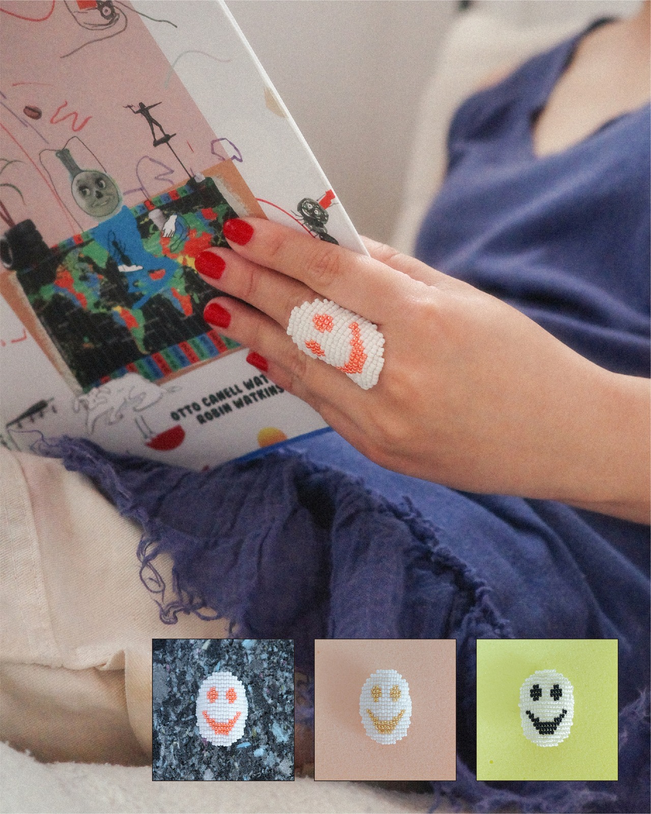 お仕事中や勉強中、何気ない瞬間に視線を向けてにっこりしてほしいスマイルリングです。
