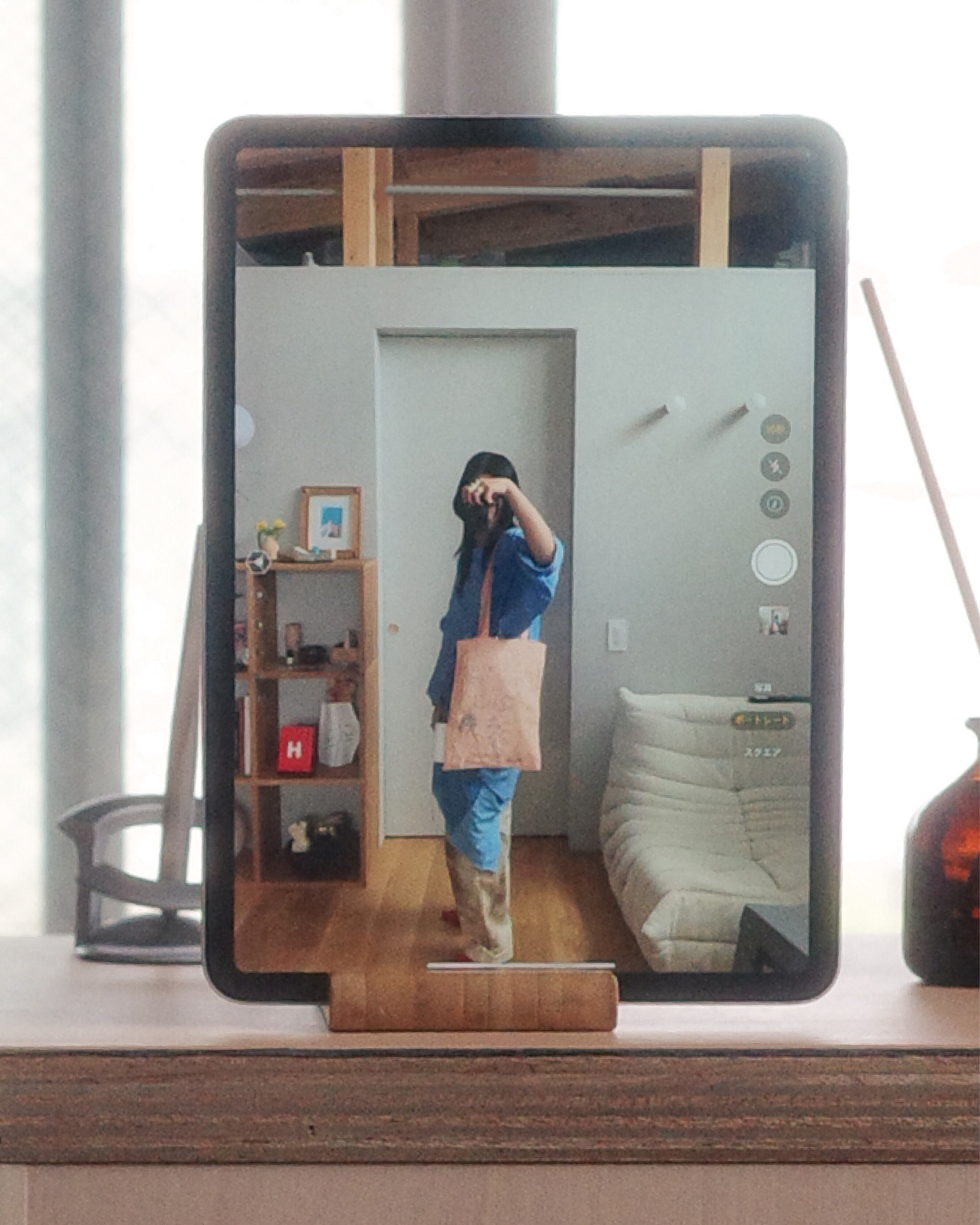 持ち手は、肩にかけたまま物を出し入れしやすい長さにこだわりました。