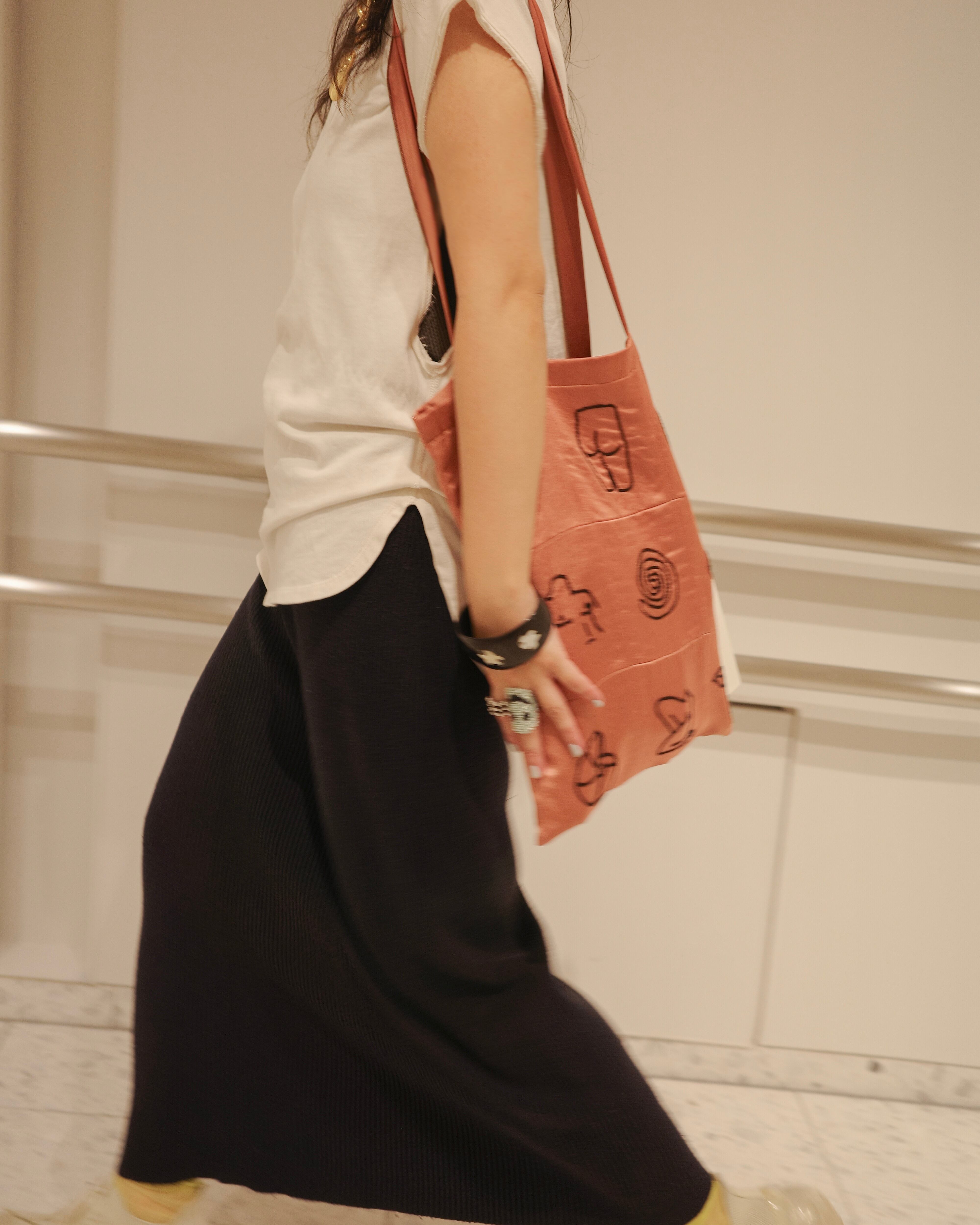 持ち手は、肩にかけたまま出し入れしやすい長さにこだわりました。